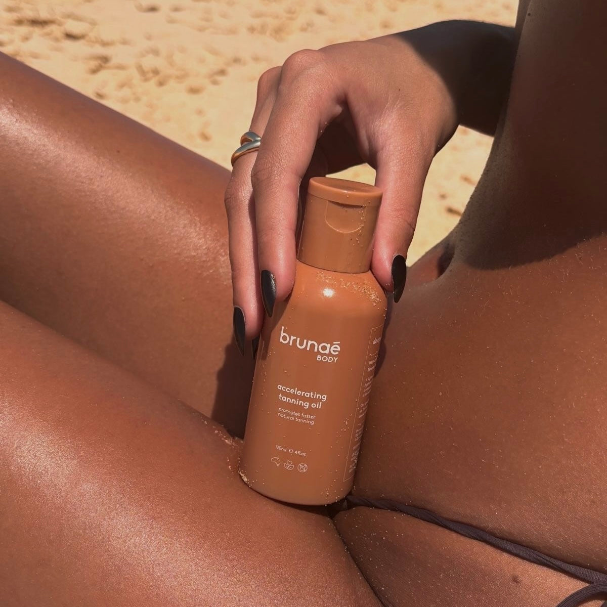 Sunbathing with Brunāe Tanning Oil